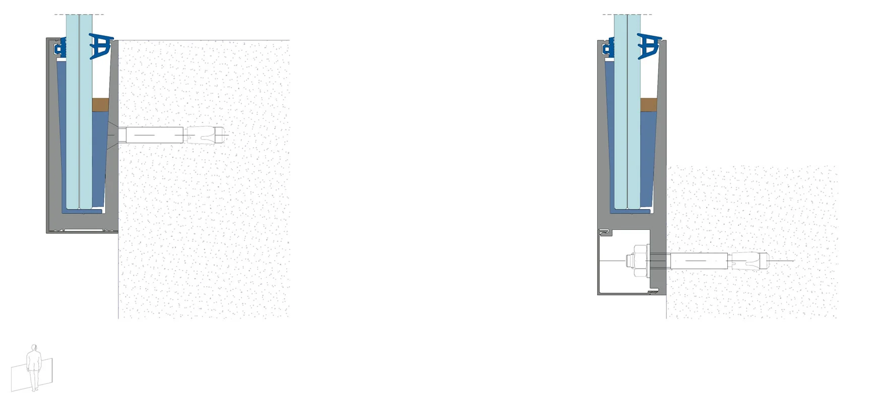 המערכת מאפשרת צורות תליה והתקנה שונות של מעקות זכוכית בשאיפה