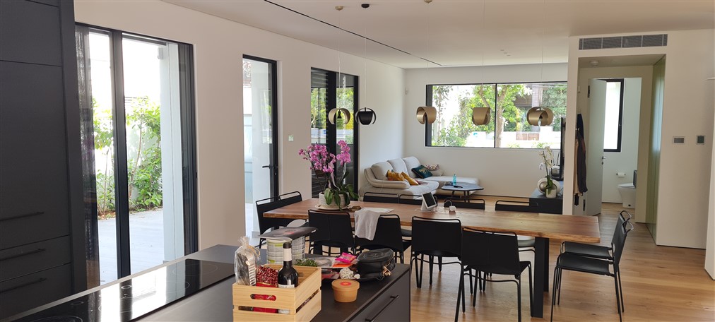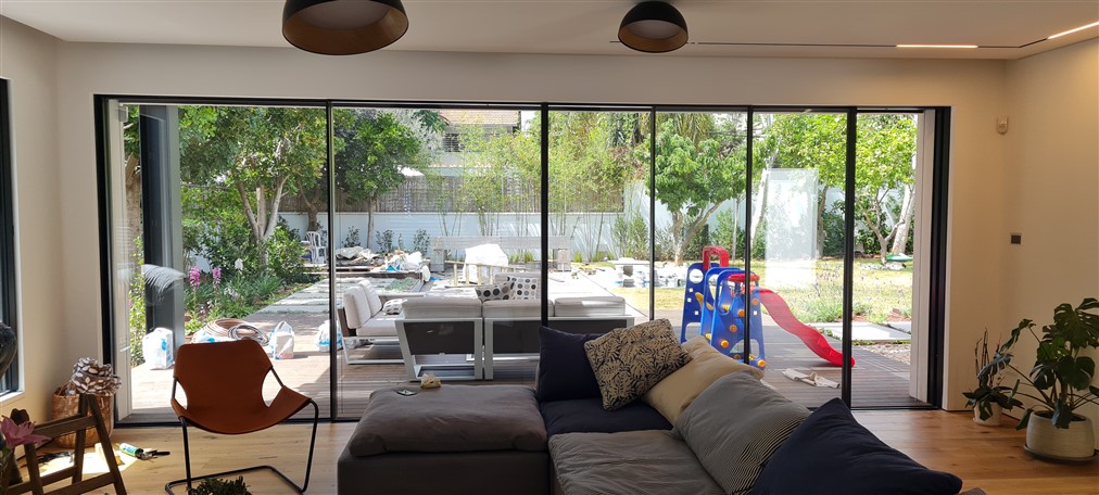 בפרויקט זה השתמשנו בפרופיל exp 36 עם נתק טרמי ומסילה בקו אפס ברצפה, פנים וחוץ. החלונות זוגגו בזכוכית בידודית מחוסמת – 8/20/8 מ"מ.